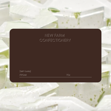 A simple, thoughtful way to gift something truly special. The New Farm Confectionery Virtual Gift Card can be redeemed online, in-store at our Newstead locations, or at selected pop-ups.